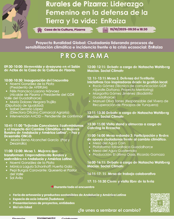 Ayer, en Pizarra, asistimos a la jornada del “Proyecto Ruralidad Global: Ciudadanía liderando procesos de sensibilización climática e incidencia frente a la crisis ecosocial: EnRaiza”.